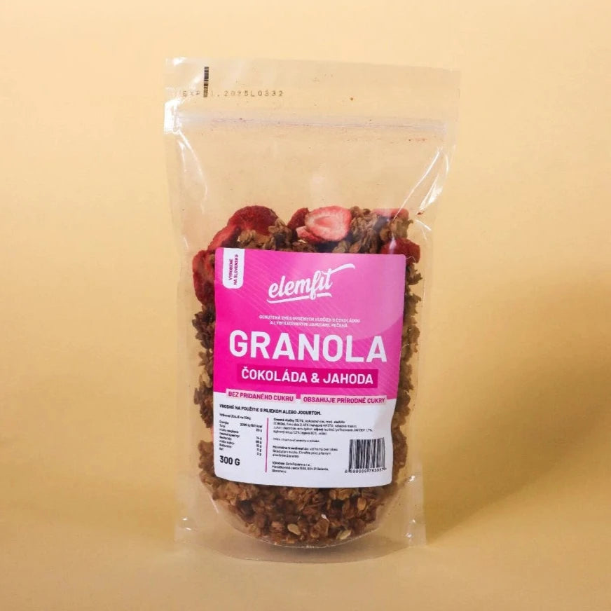 Fitness granola s lyofilizovaným ovocím je výživná a chrumkavá zmes celozrnných vločiek, orechov, semienok a mrazom sušeného ovocia. Ponúka bohatý zdroj vlákniny, vitamínov a minerálov, pričom si zachováva prirodzenú chuť ovocia a nízky obsah cukru. Ideálna ako zdravé raňajky alebo rýchla desiata pre aktívny životný štýl.