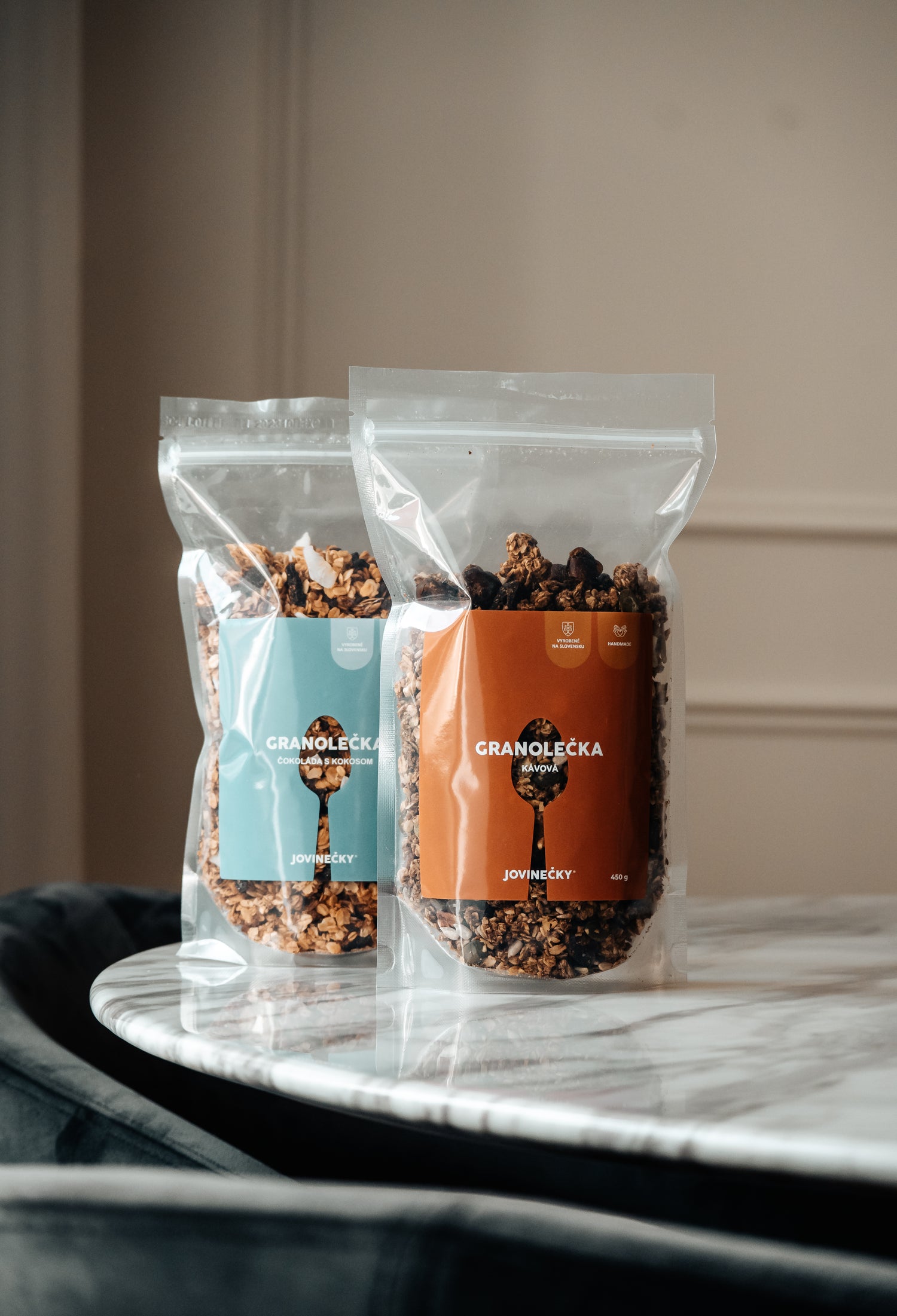 Raňajkové granole boli pripravené podľa chuťovík buniek Filipa "Jovinečko" Jovanoviča, keďže má vlastné čokolády tak sme receptúru čokolád skombinovali s kokosom. Tiež je aj vášnivý fanušík kávy a preto sme vymysleli príchuť kávová. Obe granoli dodajú každé ráno energiu na celý deň a preto si ich ľudia velice oblúbili, dostupné sú na e-shop a v obchodných reťazcoch Yeme.