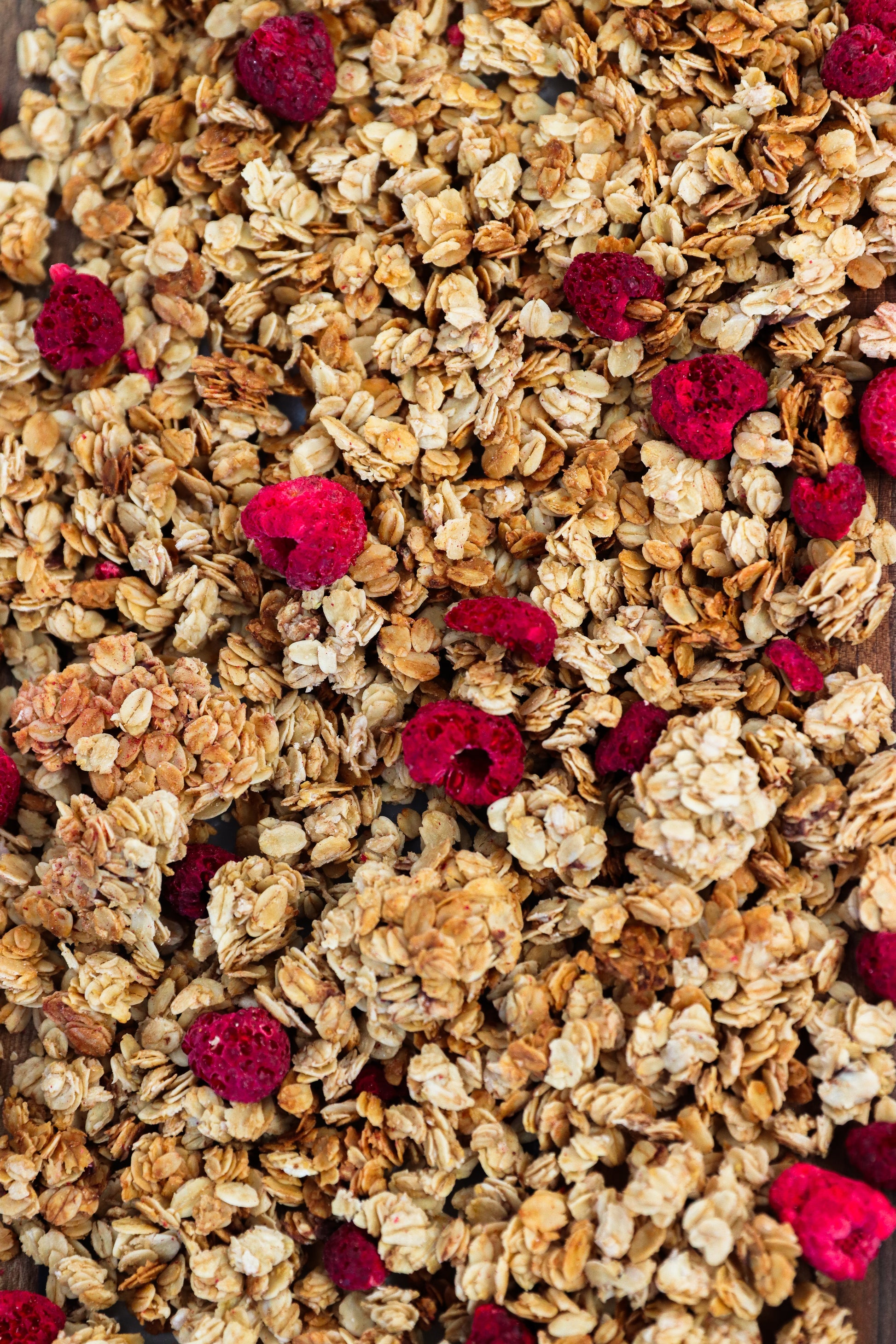 Granola je zmes ovsených vločiek, orechov a semienok, ktorá je pečená do zlatohneda a následne obohatená lyofilizovaným ovocím a kúskami čokolády. Lyofilizované ovocie je procesom odstránenia vody z ovocia pri nízkych podmienkach, čo zachováva jeho prirodzenú chuť a textúru.